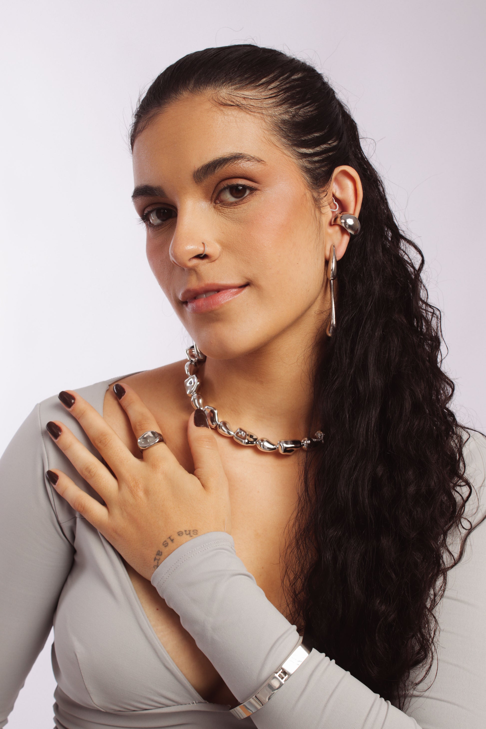 Minimalista e imponente, o Anel Orbital traz um design arredondado e contemporâneo, ideal para quem busca uma peça versátil e atemporal, e também uma peça regulável.