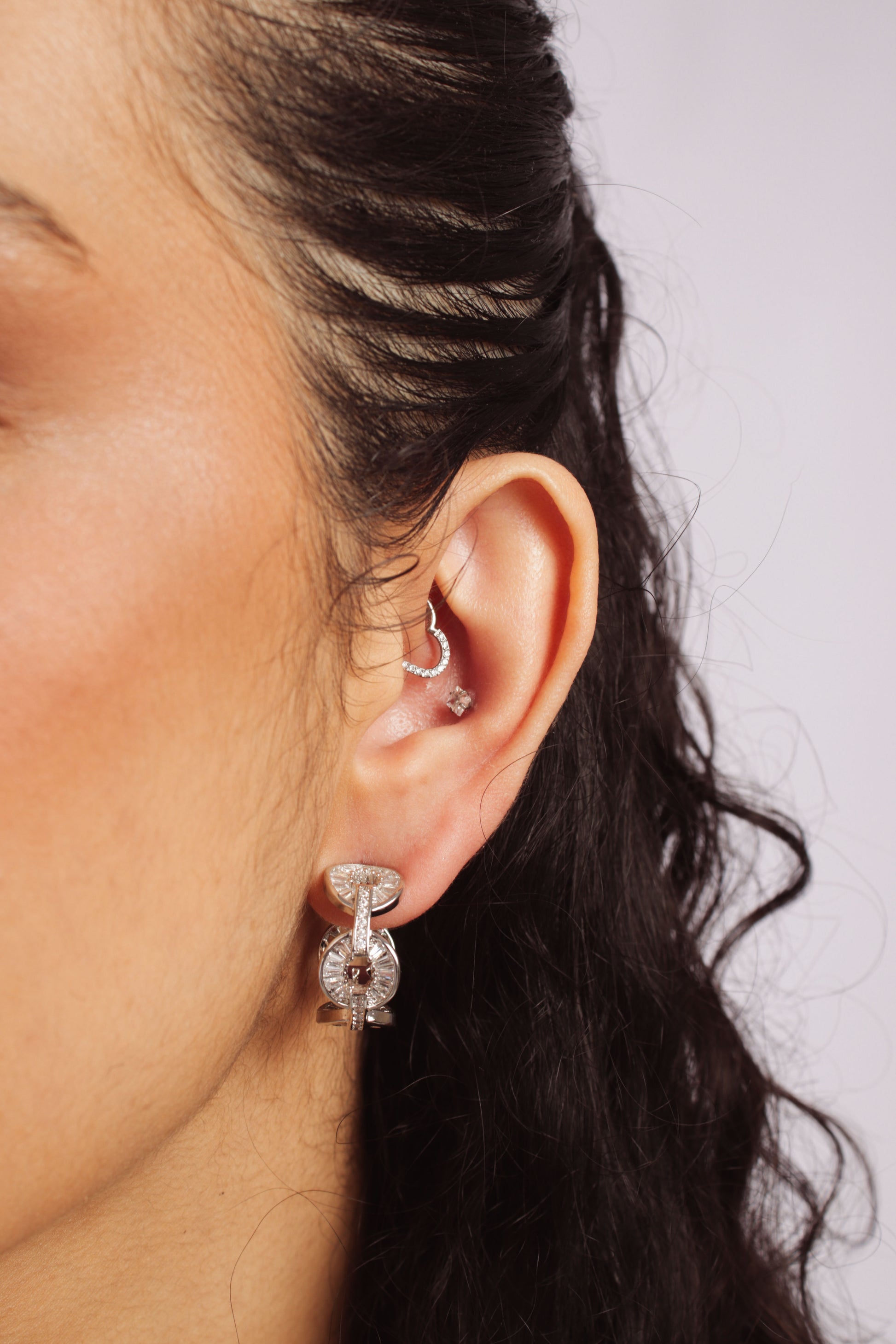 Com design arquitetônico e brilho absoluto, o brinco Argola Elos de Luz da Coleção Exagera é uma peça statement que traduz modernidade e sofisticação. Composto por formas entrelaçadas e estruturadas, ele é folheado a ródio branco e cravejado com microzircônias que refletem a luz com intensidade e elegância.
