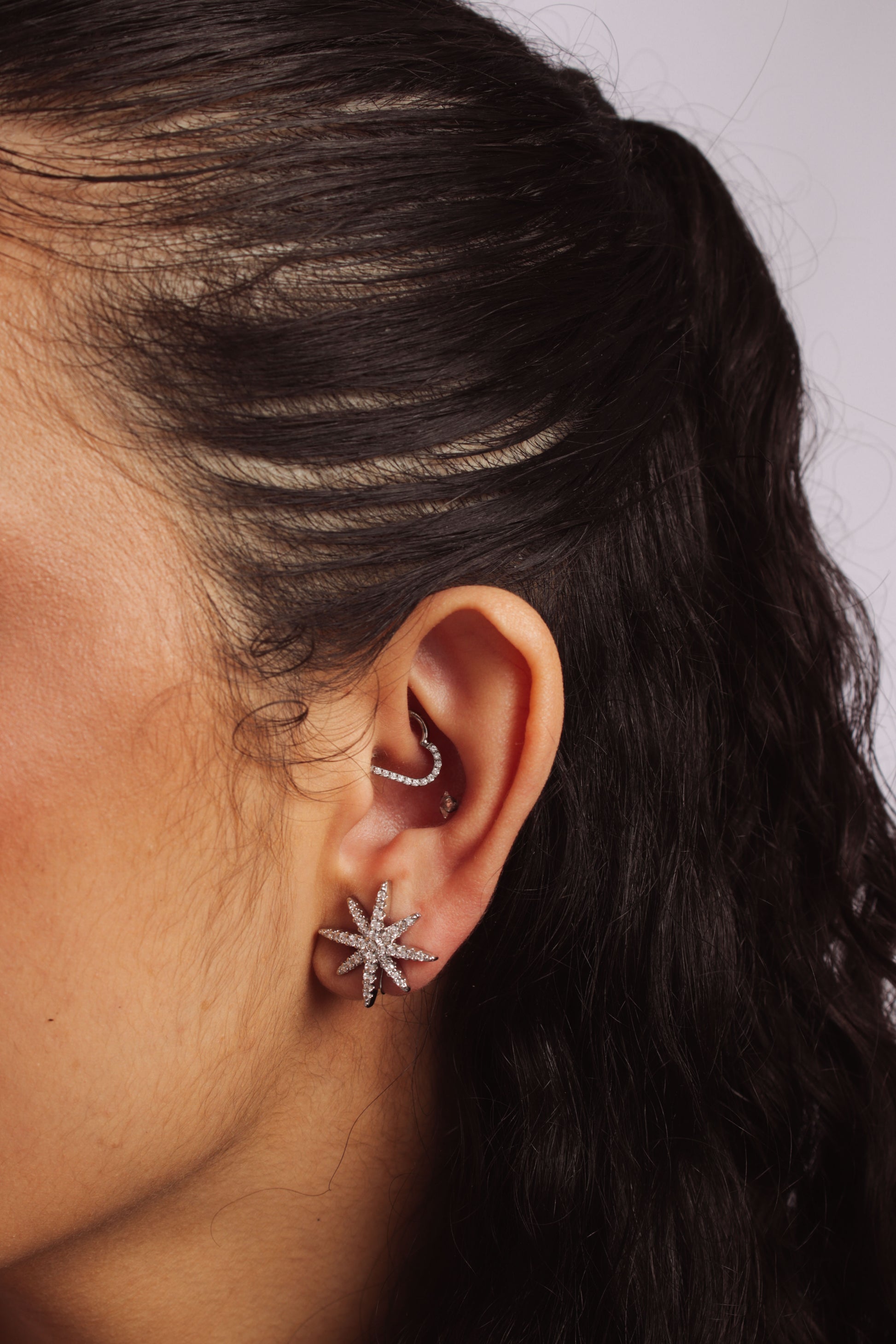Inspirado na força e no brilho dos astros, o Brinco Solstício traduz luz, movimento e intensidade em cada detalhe. Seu design em formato de estrela de oito pontas, cravejada de microzircônias cintilantes, é a expressão máxima de glamour e sofisticação.