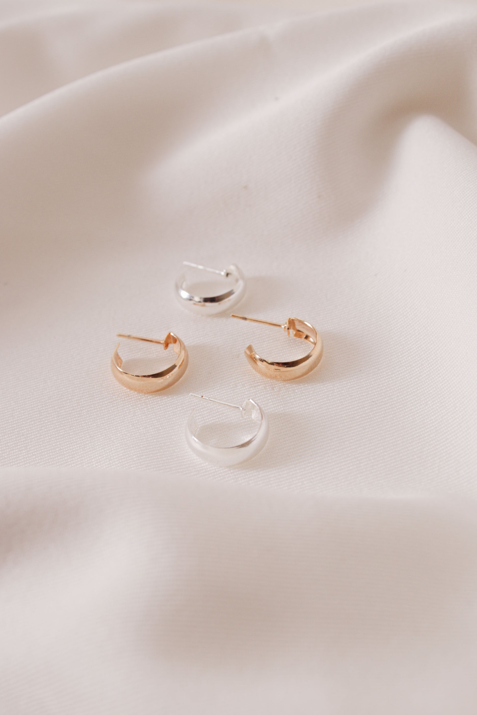 Com design volumoso e acabamento espelhado, o trio pode ser usado junto em uma mesma orelha ou separado, garantindo versatilidade para looks do dia a dia ou produções mais ousadas.